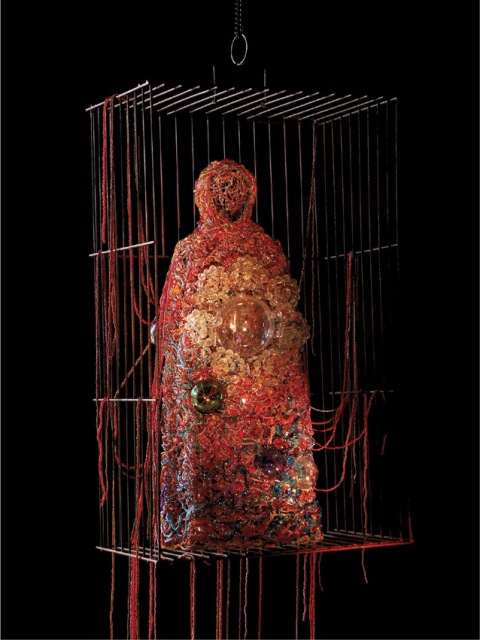 Un autre thème récurrent dans l’univers de la basco-landaise est celui de la foi. Celle qui cite Jérôme Bosch, Marc Chagall mais aussi les surréalistes parmi ses influences, fut bercée par une éducation religieuse. Mais au-delà du culte chrétien, l’artiste se passionne pour toutes les formes de croyances. Religion, mythologie, contes populaires, la prolifique les passe au moulinet de son esprit pour générer de précieuses madones, des talismans provocateurs ou d’émouvants emmaillotages affublés d’ornements à caractère rituel.